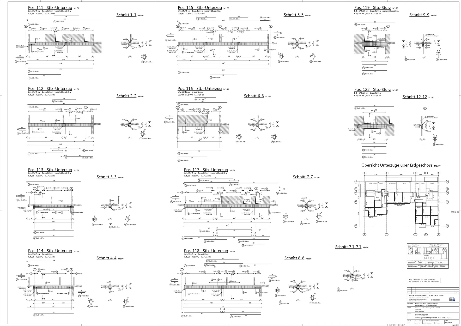 Unsere Leistungen: Statische Berechnung, baulicher Brandschutz, Wärmeschutz- & Schallschutznachweis, Positions-, Schal- und Bewehrungspläne