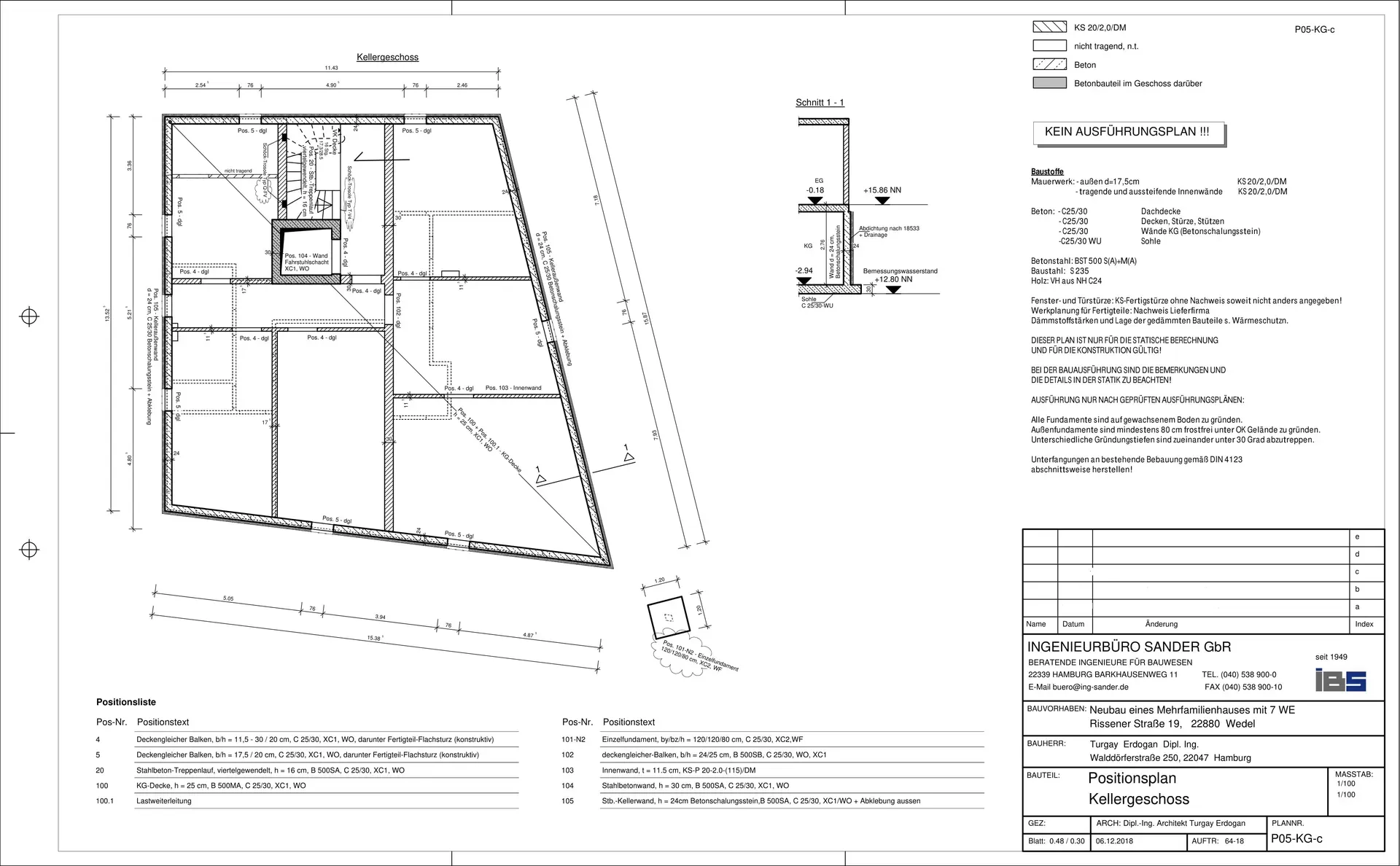 Statische Berechnung, Positions-, Schal- und Bewehrungspläne